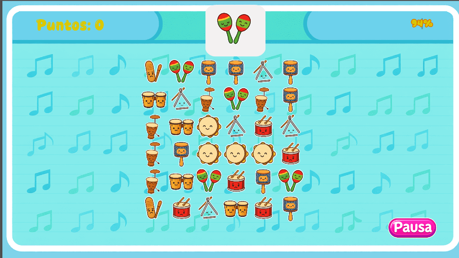 Juego casual sobre instrumentos musicales. Este es un prototipo pequeño donde se pone a prueba tu agilidad mental. Donde tu objetivo será acumular cuantos mas instrumentos puedas antes de que se acabe el tiempo.